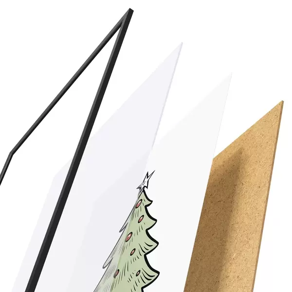 Plakatą sudaro rėmas, pleksiklas, atspausdintas vaizdas ir medžio drožlių plokštės pagrindas. Plakatą galima iš karto pakabinti ant sienos dėl kitoje pusėje esančių laikiklių.