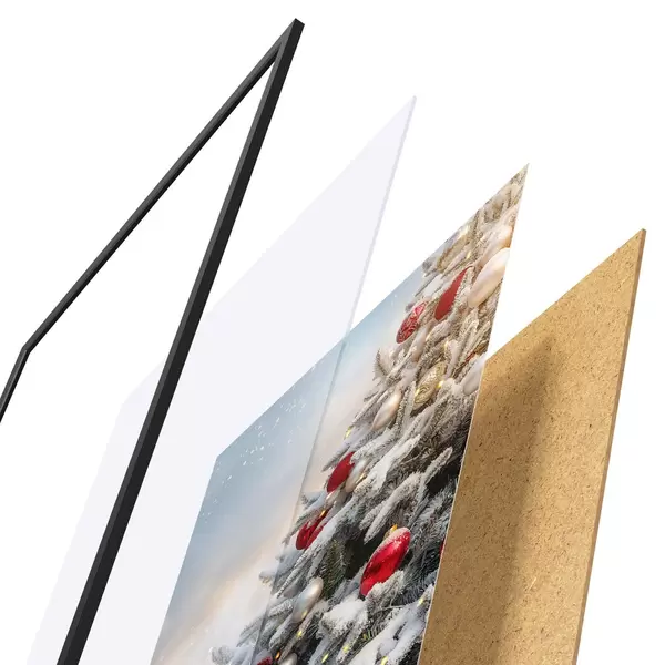 Plakatą sudaro rėmas, pleksiklas, atspausdintas vaizdas ir medžio drožlių plokštės pagrindas. Plakatą galima iš karto pakabinti ant sienos dėl kitoje pusėje esančių laikiklių.