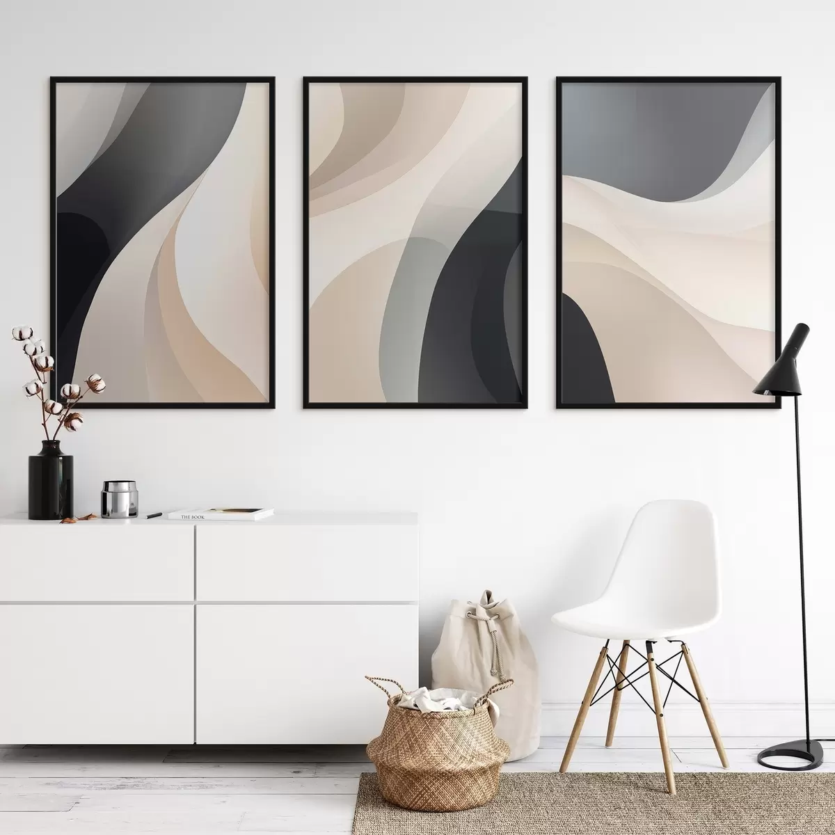 Plakatas Minimalistinės kreminės, pilkos ir juodos spalvos tekančios linijos Ne d00962