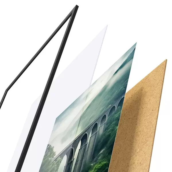 Plakatą sudaro rėmas, pleksiklas, atspausdintas vaizdas ir medžio drožlių plokštės pagrindas. Plakatą galima iš karto pakabinti ant sienos dėl kitoje pusėje esančių laikiklių.