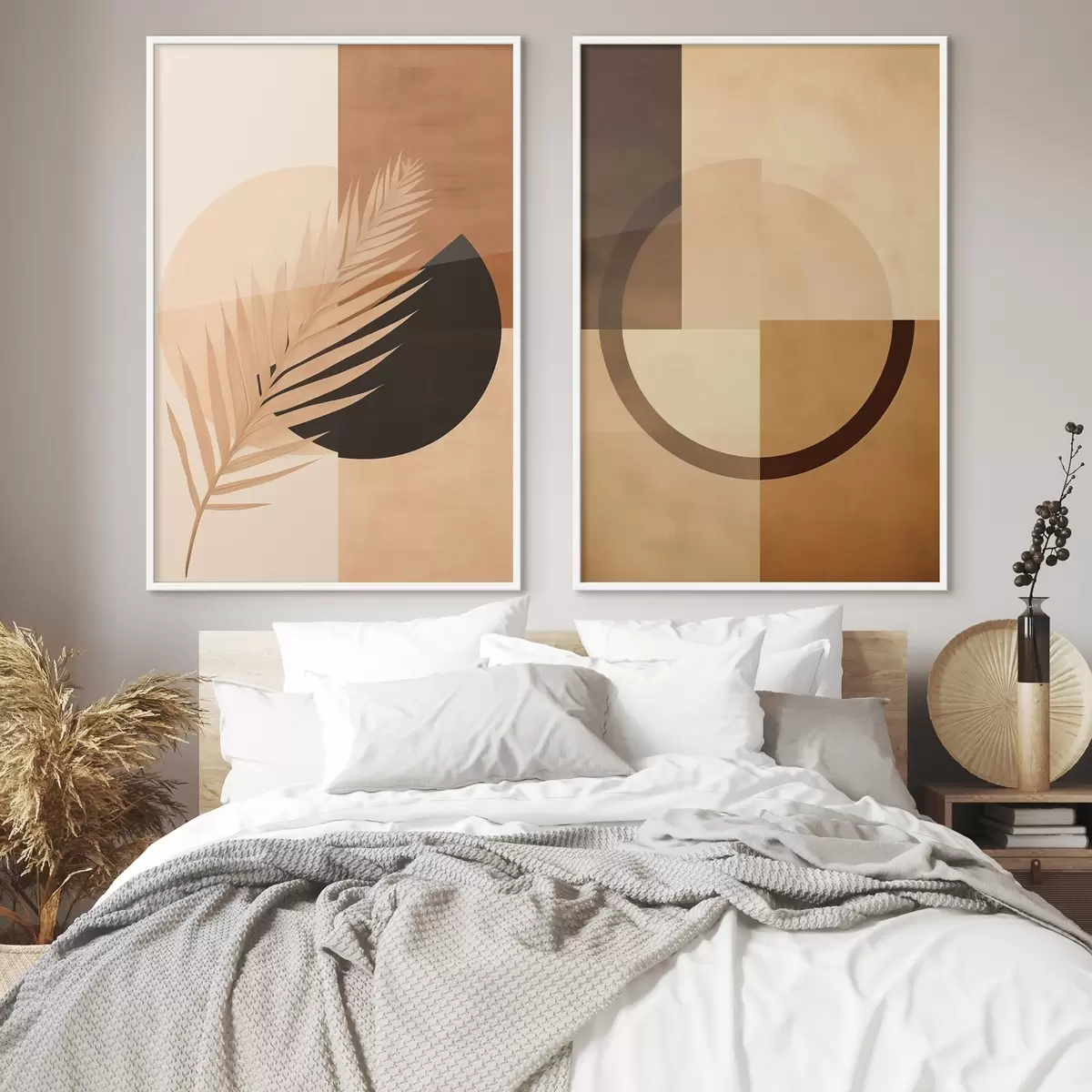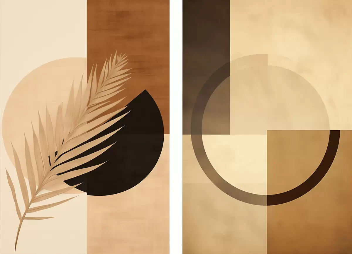 Plakatas Terakota ir smėlio spalvos geometrinis raštas su palmių lapų motyvu Ne d00968