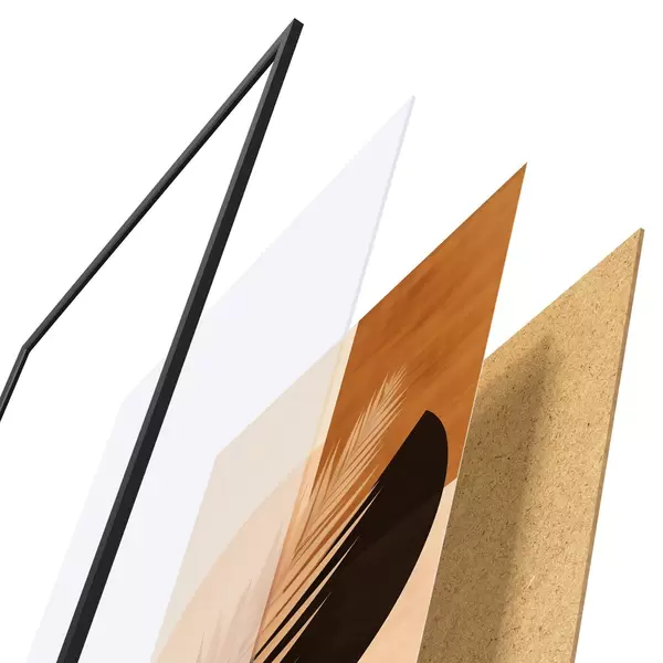 Plakatą sudaro rėmas, pleksiklas, atspausdintas vaizdas ir medžio drožlių plokštės pagrindas. Plakatą galima iš karto pakabinti ant sienos dėl kitoje pusėje esančių laikiklių.