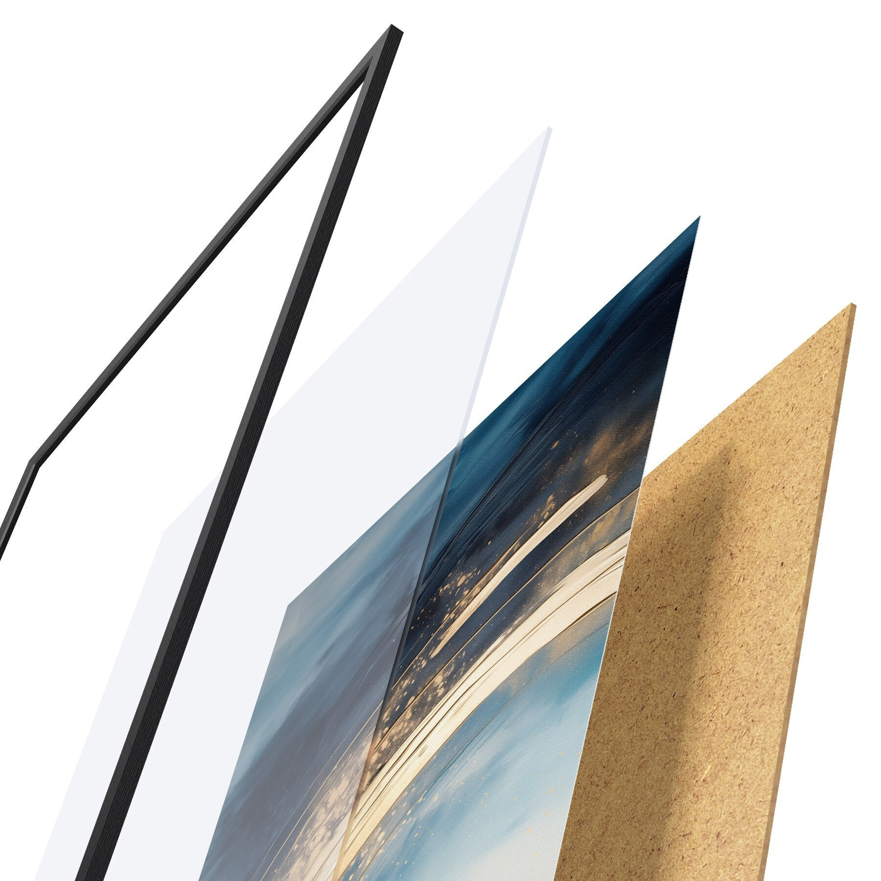 Plakatą sudaro rėmas, pleksiklas, atspausdintas vaizdas ir medžio drožlių plokštės pagrindas. Plakatą galima iš karto pakabinti ant sienos dėl kitoje pusėje esančių laikiklių.