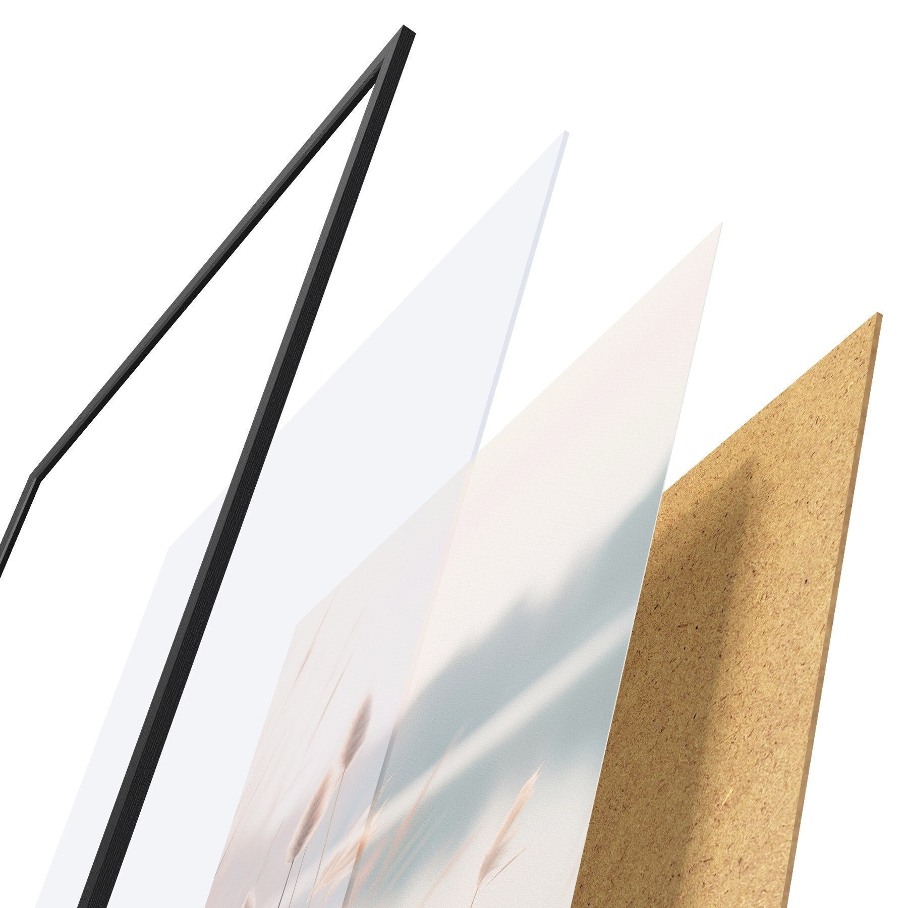 Plakatą sudaro rėmas, pleksiklas, atspausdintas vaizdas ir medžio drožlių plokštės pagrindas. Plakatą galima iš karto pakabinti ant sienos dėl kitoje pusėje esančių laikiklių.