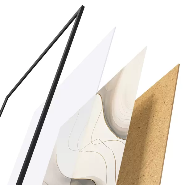 Plakatą sudaro rėmas, pleksiklas, atspausdintas vaizdas ir medžio drožlių plokštės pagrindas. Plakatą galima iš karto pakabinti ant sienos dėl kitoje pusėje esančių laikiklių.
