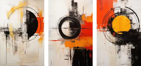 Plakatas Tekstūruoti apskritimai ir ryškūs potėpiai juodos, ochros ir oranžinės spalvos Ne d00974