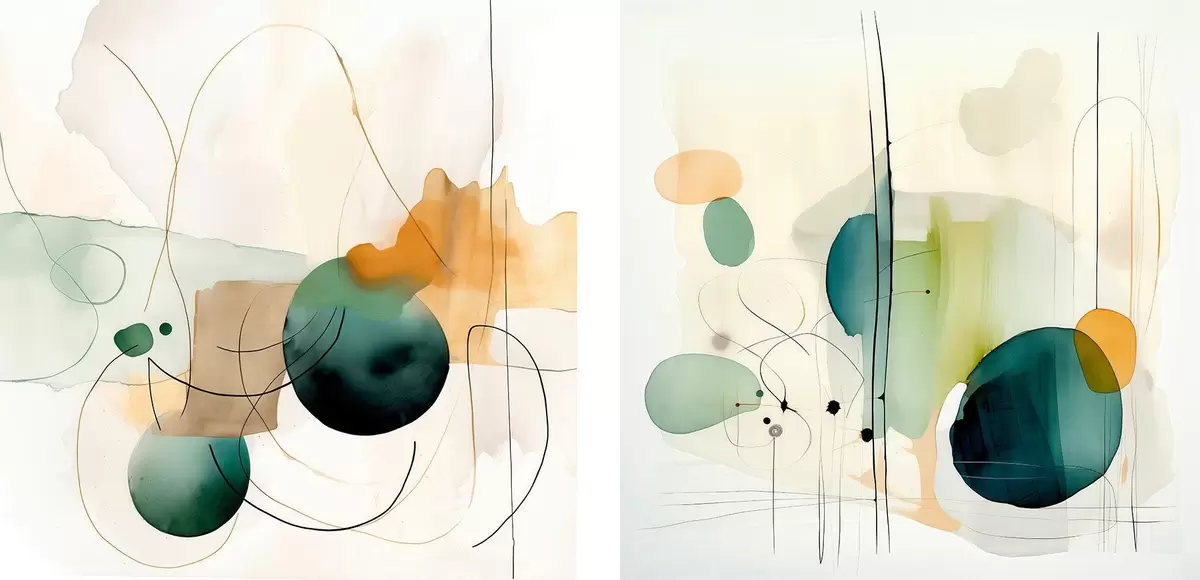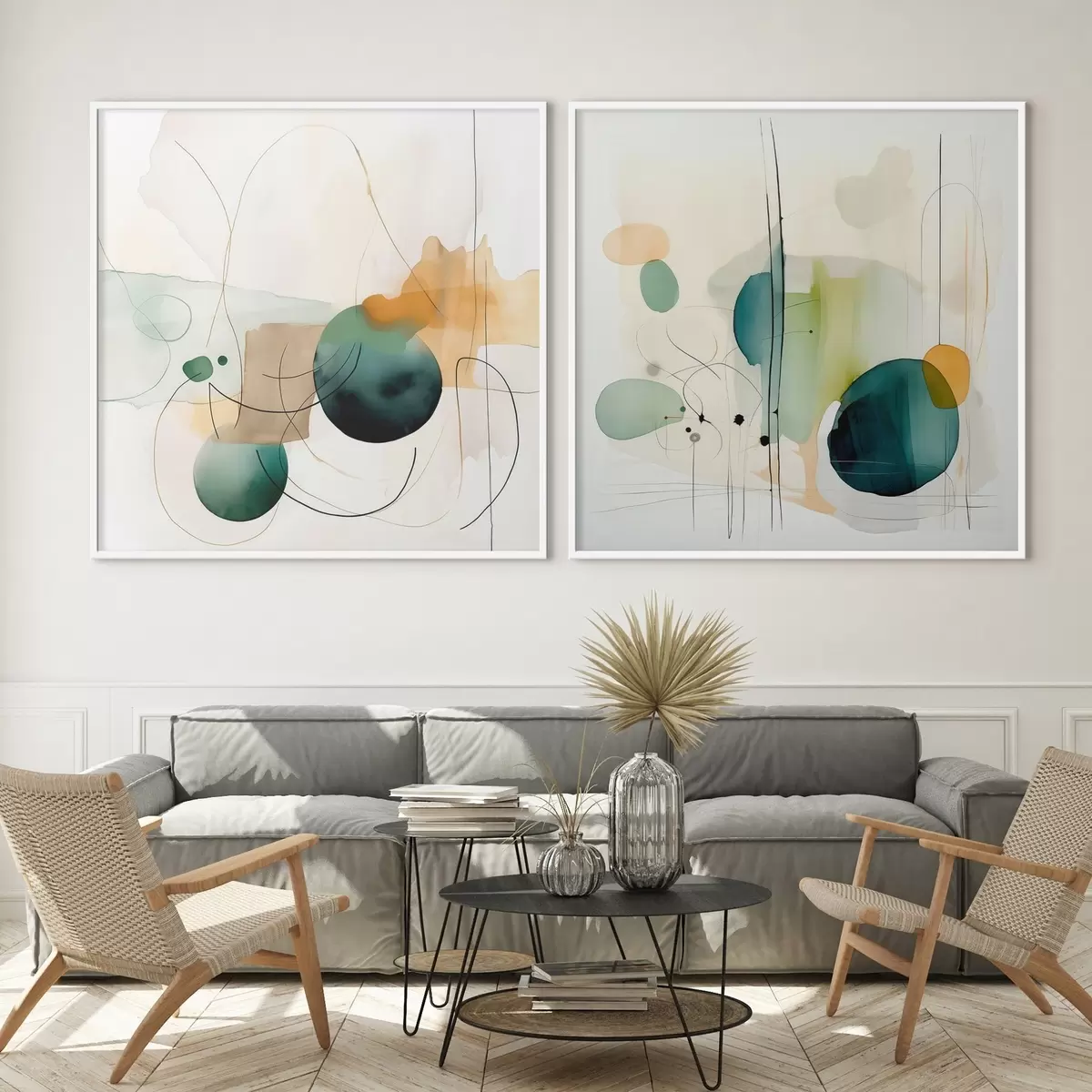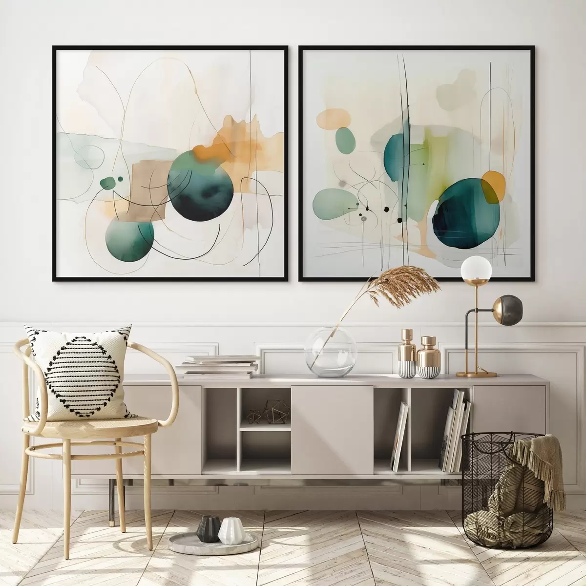Plakatas Dviejų dalių abstrakti kompozicija su švelniais spalvų plotais d00985