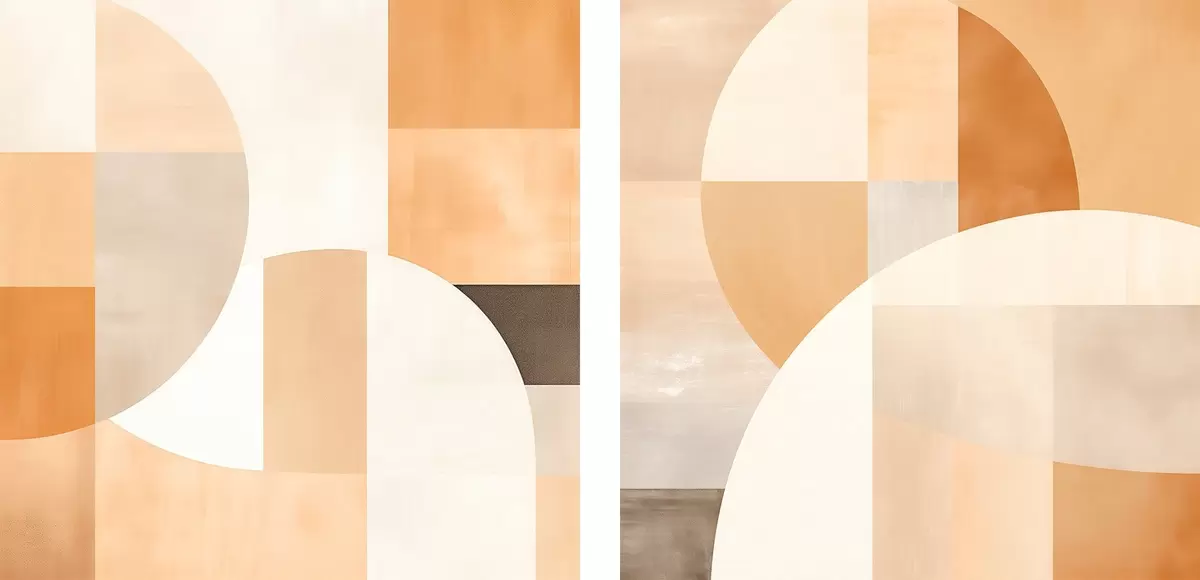 Plakatas Kompozicija su dideliais pavidalais ir švelniais spalvų blokais d00986
