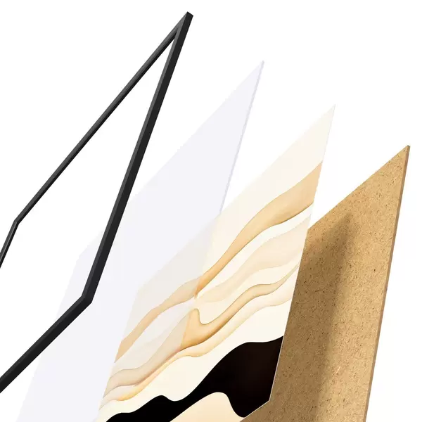 Plakatą sudaro rėmas, pleksiklas, atspausdintas vaizdas ir medžio drožlių plokštės pagrindas. Plakatą galima iš karto pakabinti ant sienos dėl kitoje pusėje esančių laikiklių.