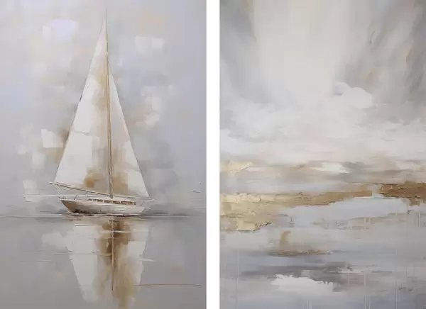 Plakatas Burlaivis ir abstrakčios kompozicijos tapybos imitacija Ne d00999