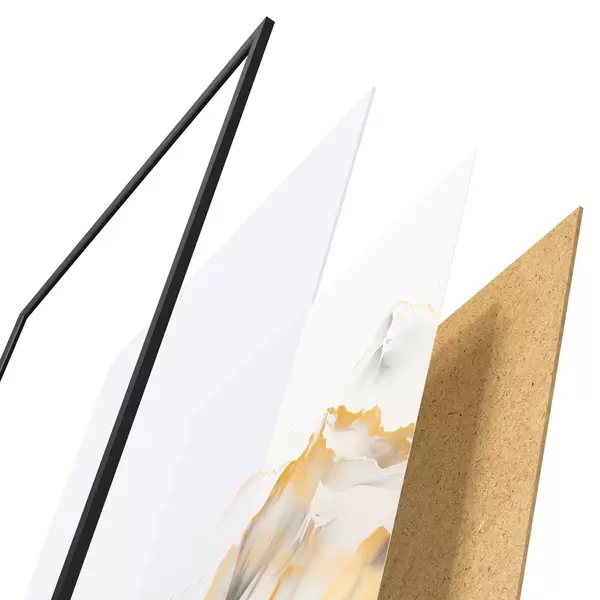 Plakatą sudaro rėmas, pleksiklas, atspausdintas vaizdas ir medžio drožlių plokštės pagrindas. Plakatą galima iš karto pakabinti ant sienos dėl kitoje pusėje esančių laikiklių.