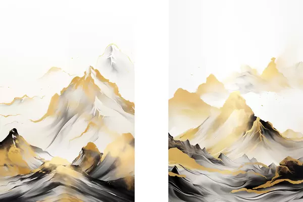 Plakatas Tekstūruotos geltonos ir juodos kalvos su snieguotomis viršūnėmis, tapybos stilius „ink wash“, minimalistinis kalnų masyvas d01002