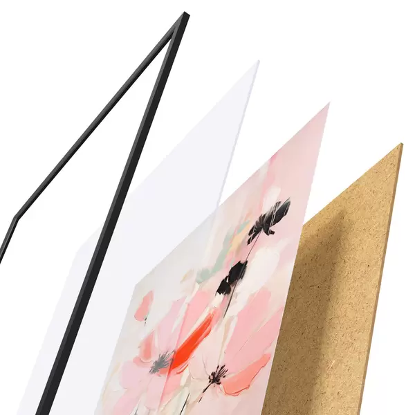 Plakatą sudaro rėmas, pleksiklas, atspausdintas vaizdas ir medžio drožlių plokštės pagrindas. Plakatą galima iš karto pakabinti ant sienos dėl kitoje pusėje esančių laikiklių.