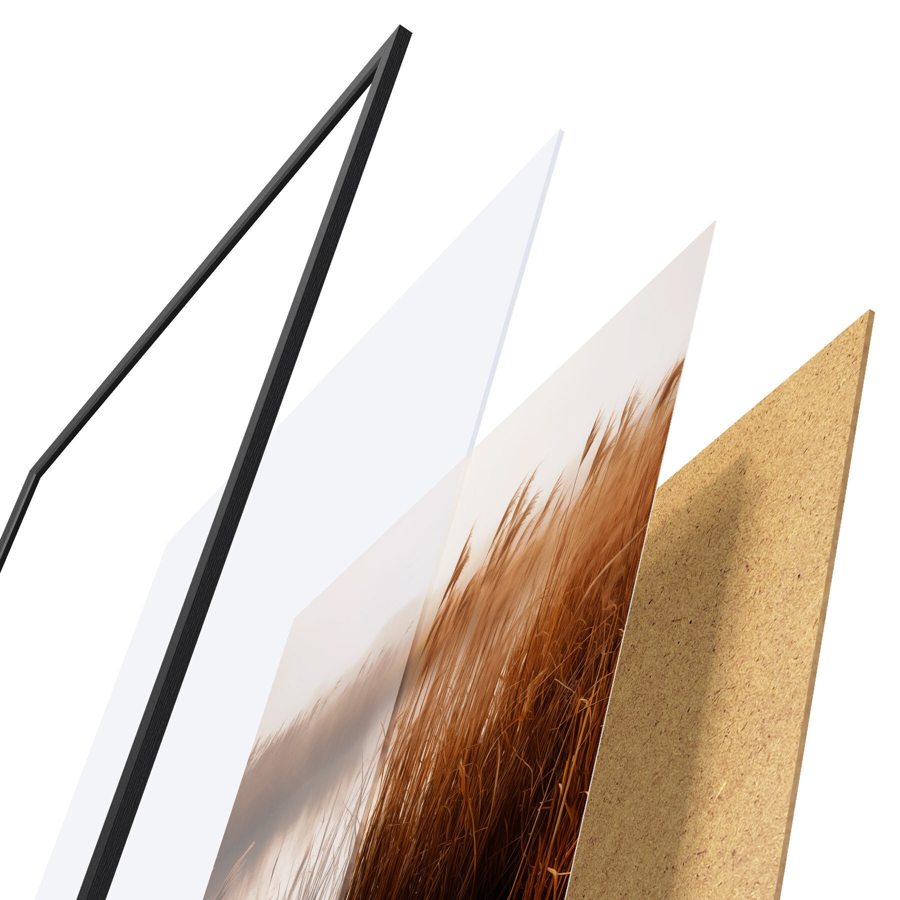 Plakatą sudaro rėmas, pleksiklas, atspausdintas vaizdas ir medžio drožlių plokštės pagrindas. Plakatą galima iš karto pakabinti ant sienos dėl kitoje pusėje esančių laikiklių.