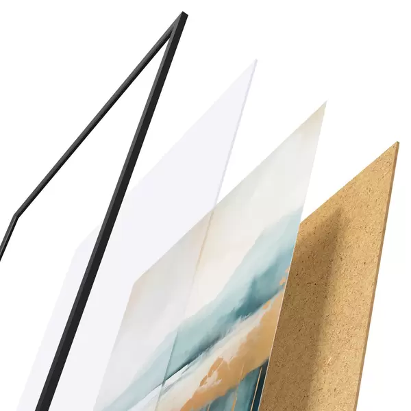 Plakatą sudaro rėmas, pleksiklas, atspausdintas vaizdas ir medžio drožlių plokštės pagrindas. Plakatą galima iš karto pakabinti ant sienos dėl kitoje pusėje esančių laikiklių.