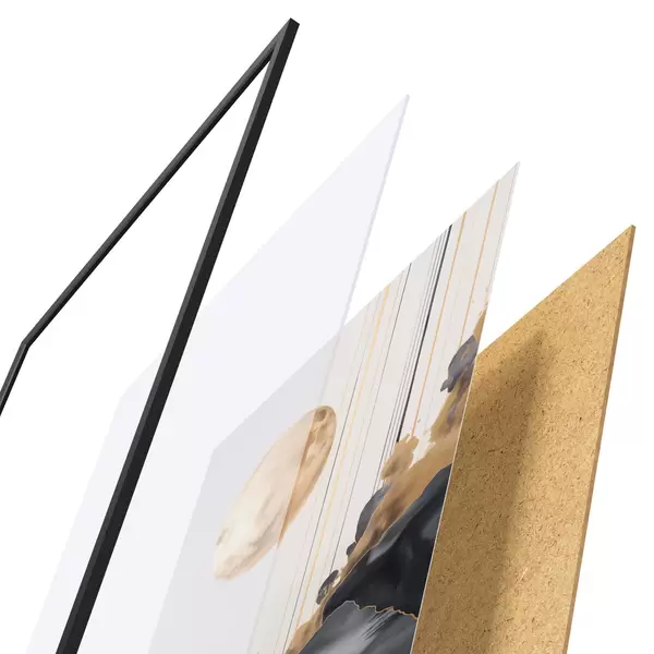 Plakatą sudaro rėmas, pleksiklas, atspausdintas vaizdas ir medžio drožlių plokštės pagrindas. Plakatą galima iš karto pakabinti ant sienos dėl kitoje pusėje esančių laikiklių.