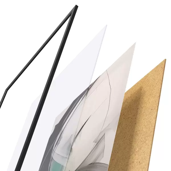 Plakatą sudaro rėmas, pleksiklas, atspausdintas vaizdas ir medžio drožlių plokštės pagrindas. Plakatą galima iš karto pakabinti ant sienos dėl kitoje pusėje esančių laikiklių.