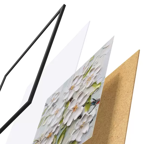 Plakatą sudaro rėmas, pleksiklas, atspausdintas vaizdas ir medžio drožlių plokštės pagrindas. Plakatą galima iš karto pakabinti ant sienos dėl kitoje pusėje esančių laikiklių.