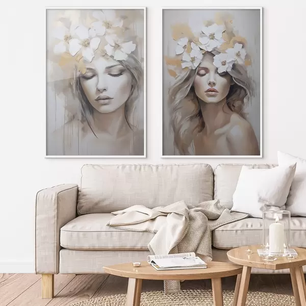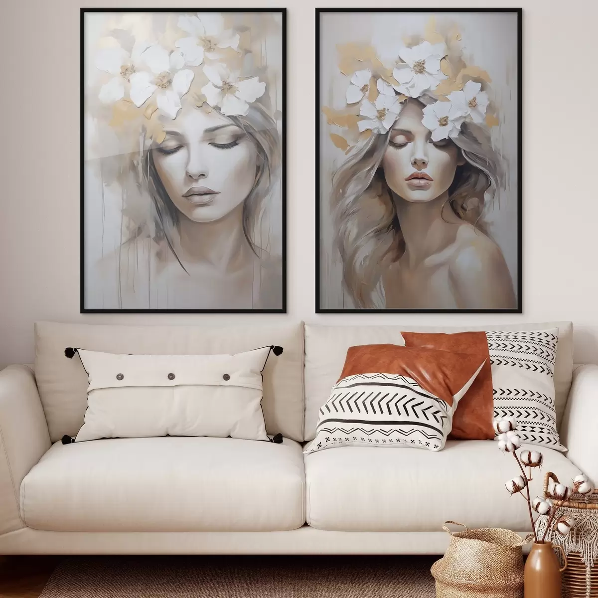 Plakatas Abstraktus merginos su gėlėmis portretas, tapybos imitacija Ne d01034