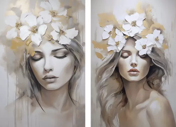 Plakatas Abstraktus merginos su gėlėmis portretas, tapybos imitacija d01034