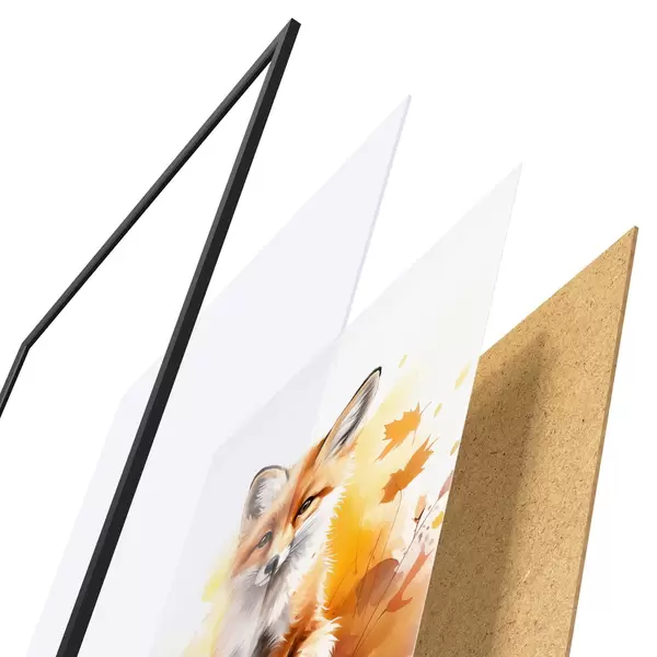 Plakatą sudaro rėmas, pleksiklas, atspausdintas vaizdas ir medžio drožlių plokštės pagrindas. Plakatą galima iš karto pakabinti ant sienos dėl kitoje pusėje esančių laikiklių.