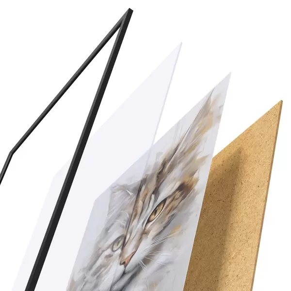 Plakatą sudaro rėmas, pleksiklas, atspausdintas vaizdas ir medžio drožlių plokštės pagrindas. Plakatą galima iš karto pakabinti ant sienos dėl kitoje pusėje esančių laikiklių.