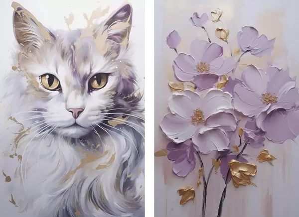 Plakatas Abstrakčios gėlės ir katė Ne d01056