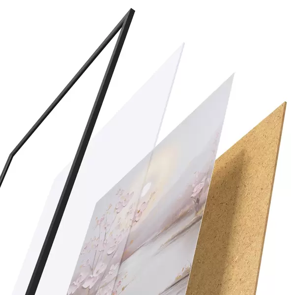 Plakatą sudaro rėmas, pleksiklas, atspausdintas vaizdas ir medžio drožlių plokštės pagrindas. Plakatą galima iš karto pakabinti ant sienos dėl kitoje pusėje esančių laikiklių.