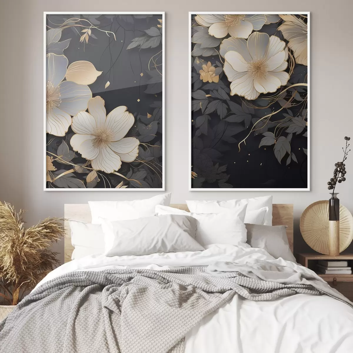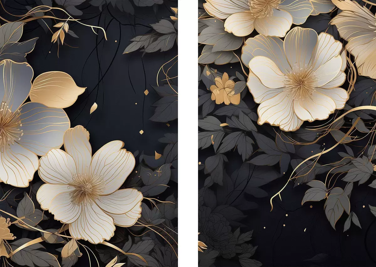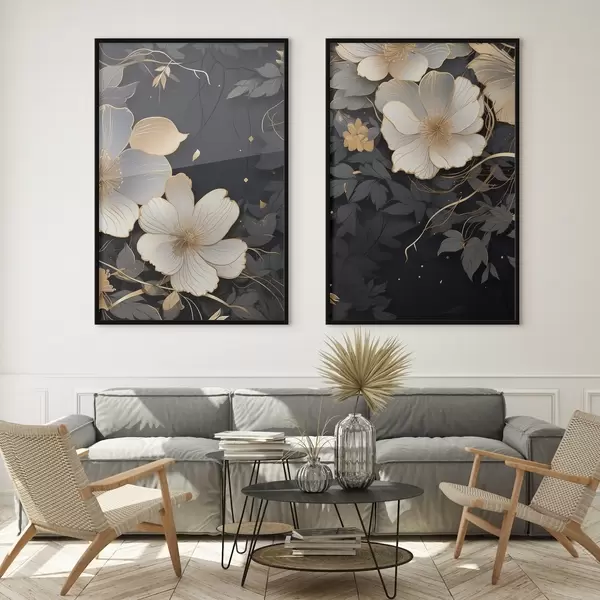 Plakatas Didelės abstrakčios gėlės ant tamsaus fono Ne d01066