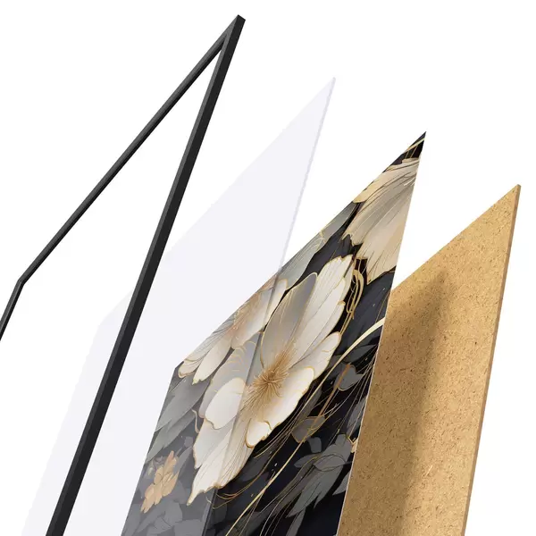 Plakatą sudaro rėmas, pleksiklas, atspausdintas vaizdas ir medžio drožlių plokštės pagrindas. Plakatą galima iš karto pakabinti ant sienos dėl kitoje pusėje esančių laikiklių.