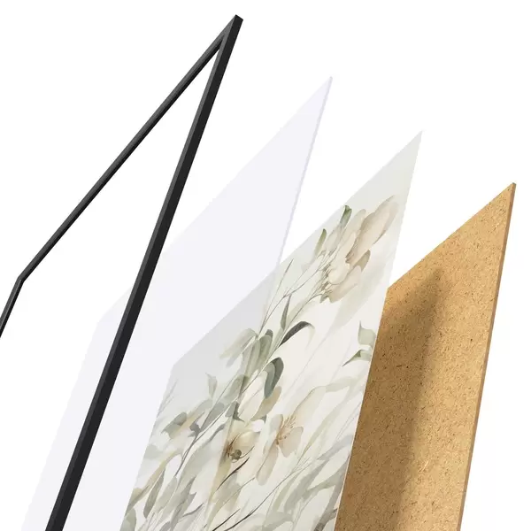 Plakatą sudaro rėmas, pleksiklas, atspausdintas vaizdas ir medžio drožlių plokštės pagrindas. Plakatą galima iš karto pakabinti ant sienos dėl kitoje pusėje esančių laikiklių.
