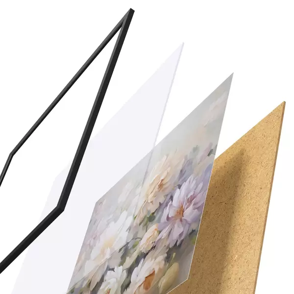 Plakatą sudaro rėmas, pleksiklas, atspausdintas vaizdas ir medžio drožlių plokštės pagrindas. Plakatą galima iš karto pakabinti ant sienos dėl kitoje pusėje esančių laikiklių.