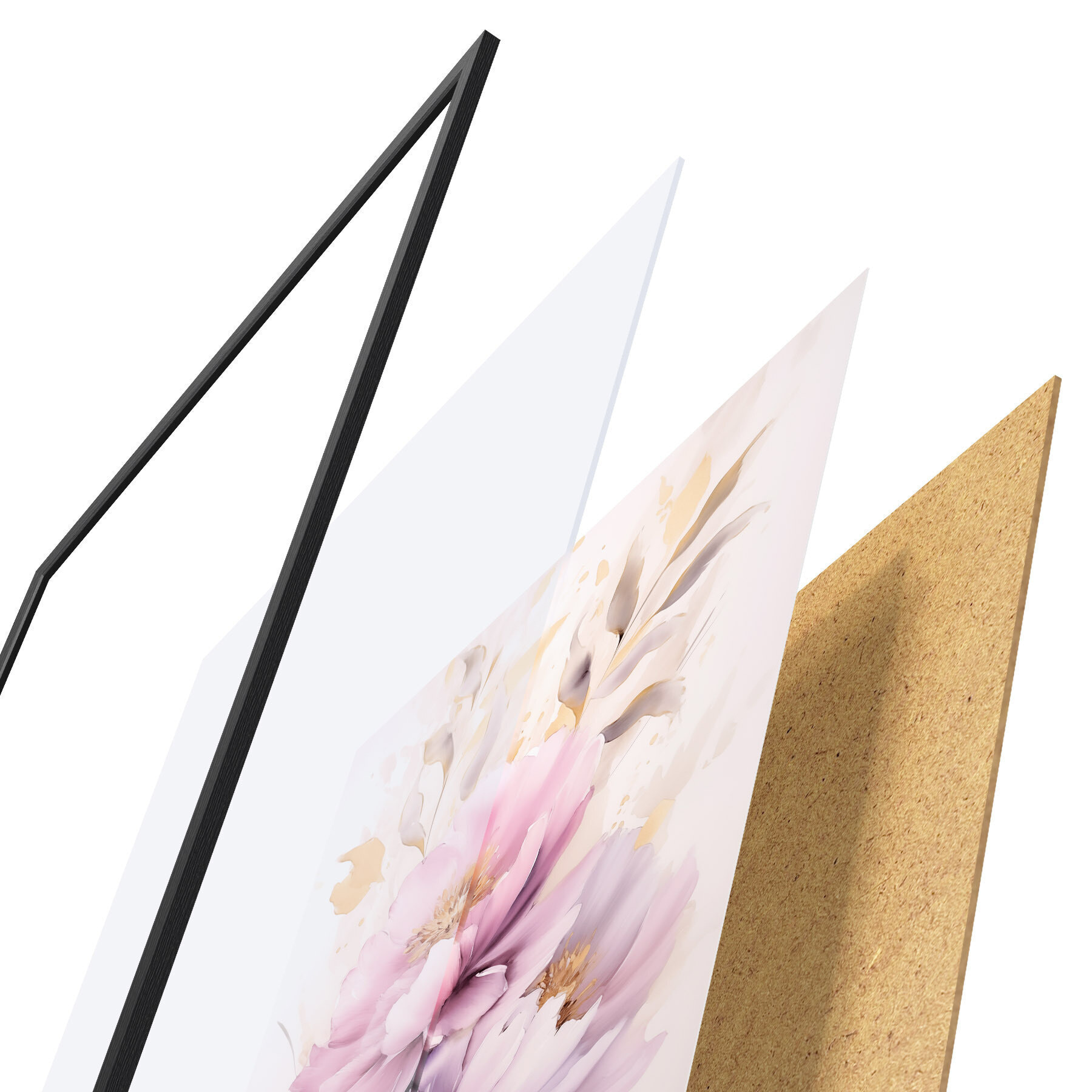 Plakatą sudaro rėmas, pleksiklas, atspausdintas vaizdas ir medžio drožlių plokštės pagrindas. Plakatą galima iš karto pakabinti ant sienos dėl kitoje pusėje esančių laikiklių.