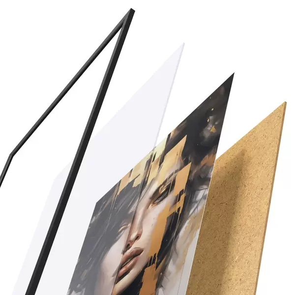 Plakatą sudaro rėmas, pleksiklas, atspausdintas vaizdas ir medžio drožlių plokštės pagrindas. Plakatą galima iš karto pakabinti ant sienos dėl kitoje pusėje esančių laikiklių.