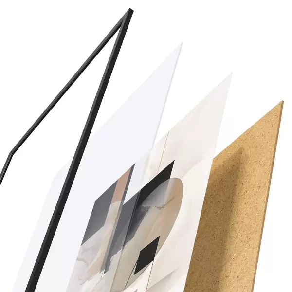 Plakatą sudaro rėmas, pleksiklas, atspausdintas vaizdas ir medžio drožlių plokštės pagrindas. Plakatą galima iš karto pakabinti ant sienos dėl kitoje pusėje esančių laikiklių.