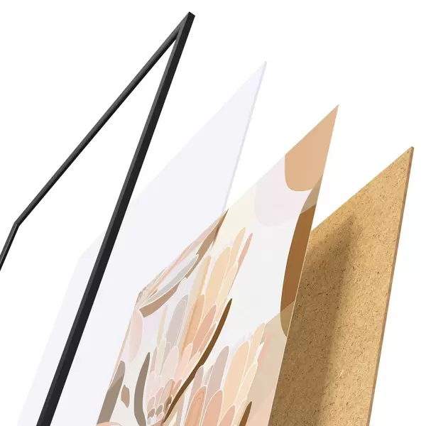 Plakatą sudaro rėmas, pleksiklas, atspausdintas vaizdas ir medžio drožlių plokštės pagrindas. Plakatą galima iš karto pakabinti ant sienos dėl kitoje pusėje esančių laikiklių.