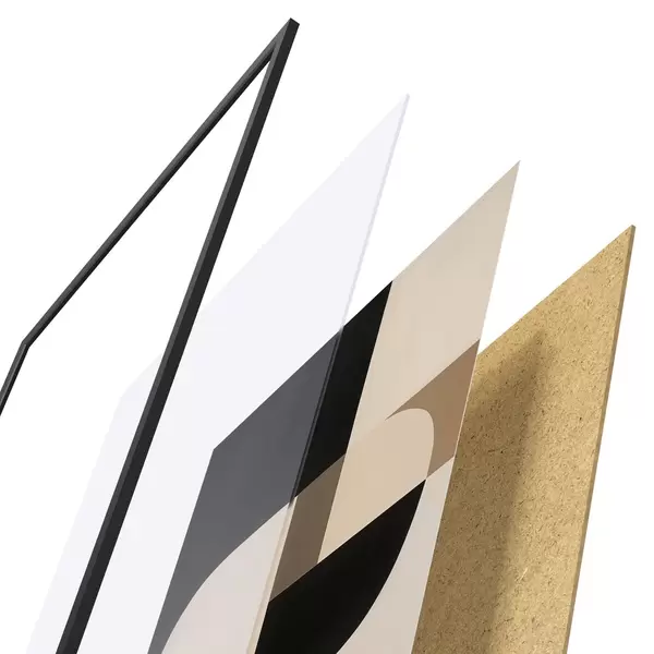 Plakatą sudaro rėmas, pleksiklas, atspausdintas vaizdas ir medžio drožlių plokštės pagrindas. Plakatą galima iš karto pakabinti ant sienos dėl kitoje pusėje esančių laikiklių.