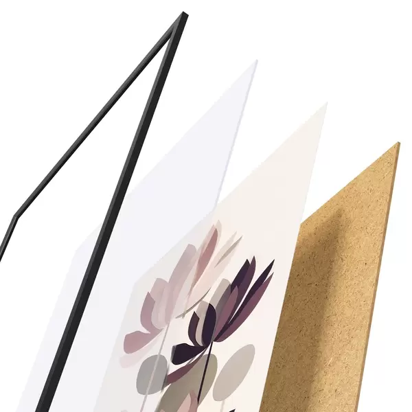 Plakatą sudaro rėmas, pleksiklas, atspausdintas vaizdas ir medžio drožlių plokštės pagrindas. Plakatą galima iš karto pakabinti ant sienos dėl kitoje pusėje esančių laikiklių.