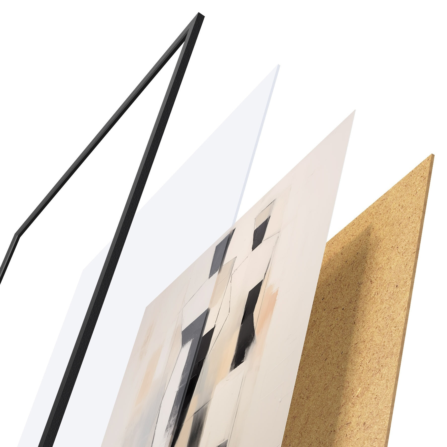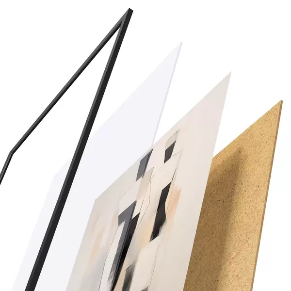 Plakatą sudaro rėmas, pleksiklas, atspausdintas vaizdas ir medžio drožlių plokštės pagrindas. Plakatą galima iš karto pakabinti ant sienos dėl kitoje pusėje esančių laikiklių.