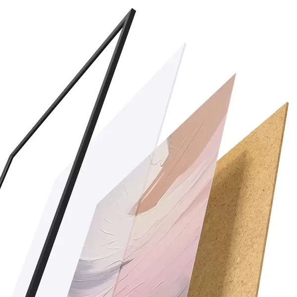 Plakatą sudaro rėmas, pleksiklas, atspausdintas vaizdas ir medžio drožlių plokštės pagrindas. Plakatą galima iš karto pakabinti ant sienos dėl kitoje pusėje esančių laikiklių.