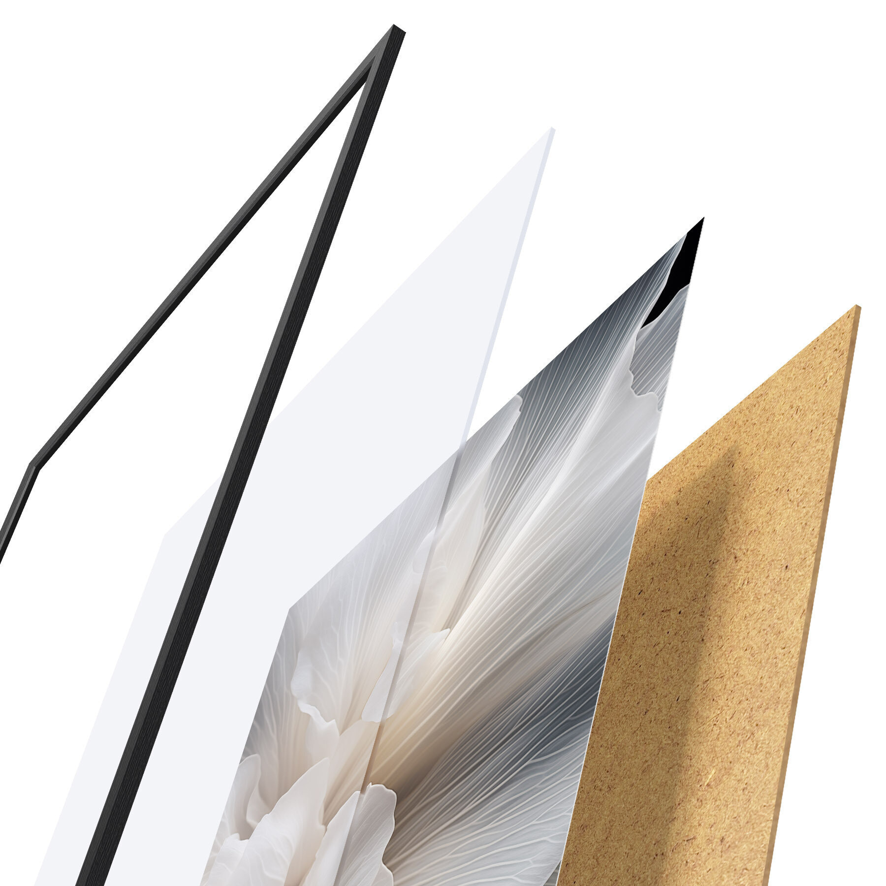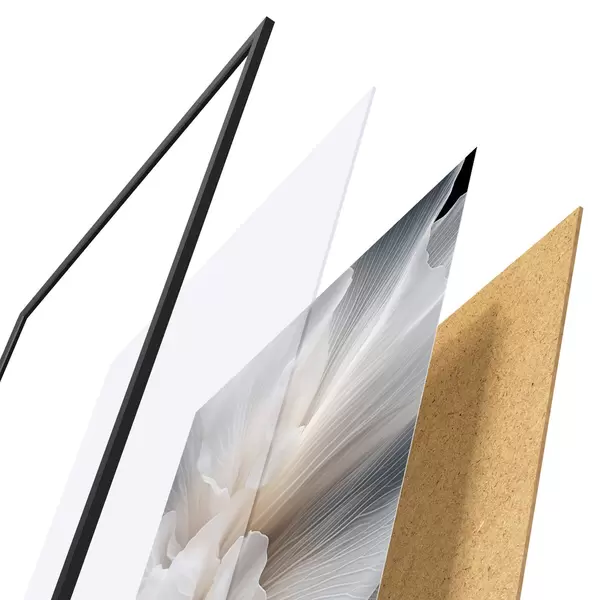 Plakatą sudaro rėmas, pleksiklas, atspausdintas vaizdas ir medžio drožlių plokštės pagrindas. Plakatą galima iš karto pakabinti ant sienos dėl kitoje pusėje esančių laikiklių.
