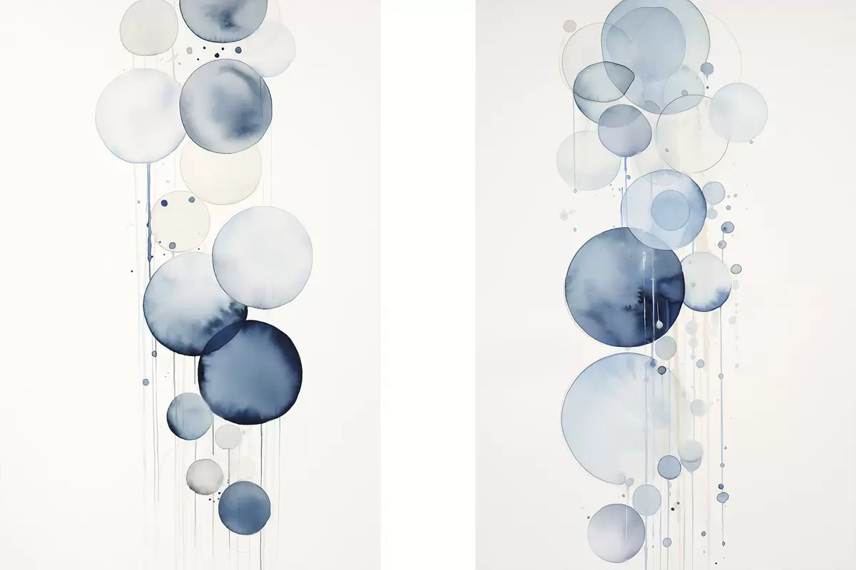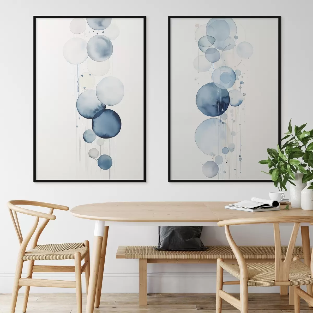 Plakatas Abstrakčios tekstūros mėlynos ir baltos akvarelės apskritimai įvairių dydžių, ant balto fono Ne d01118