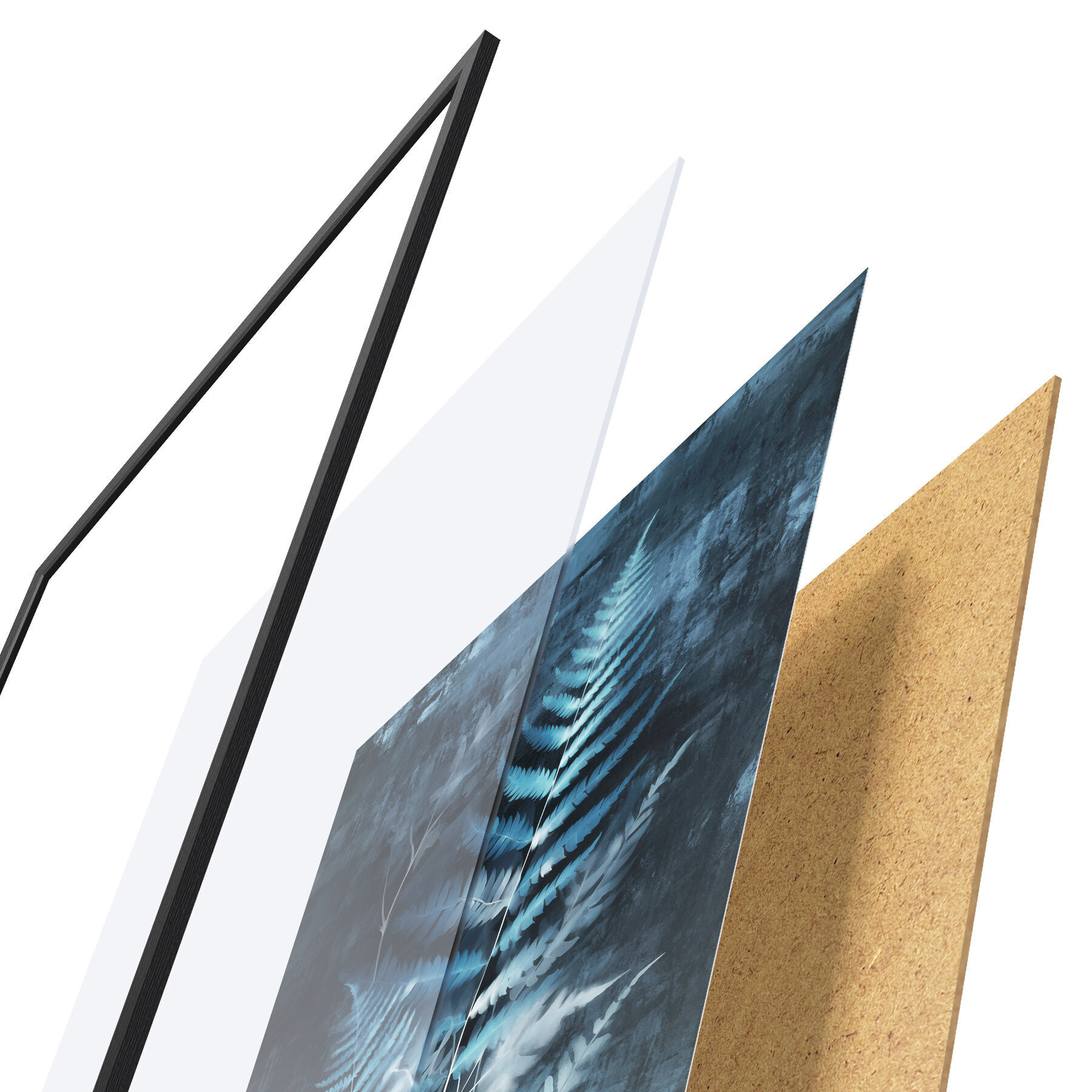 Plakatas Mėlyni paparčiai ir augalai prieš tamsų, tekstūruotą foną, akcentuojant sudėtingas detales, rentgeno efektas Ne d01121