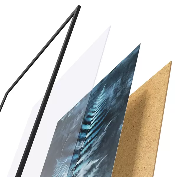 Plakatą sudaro rėmas, pleksiklas, atspausdintas vaizdas ir medžio drožlių plokštės pagrindas. Plakatą galima iš karto pakabinti ant sienos dėl kitoje pusėje esančių laikiklių.