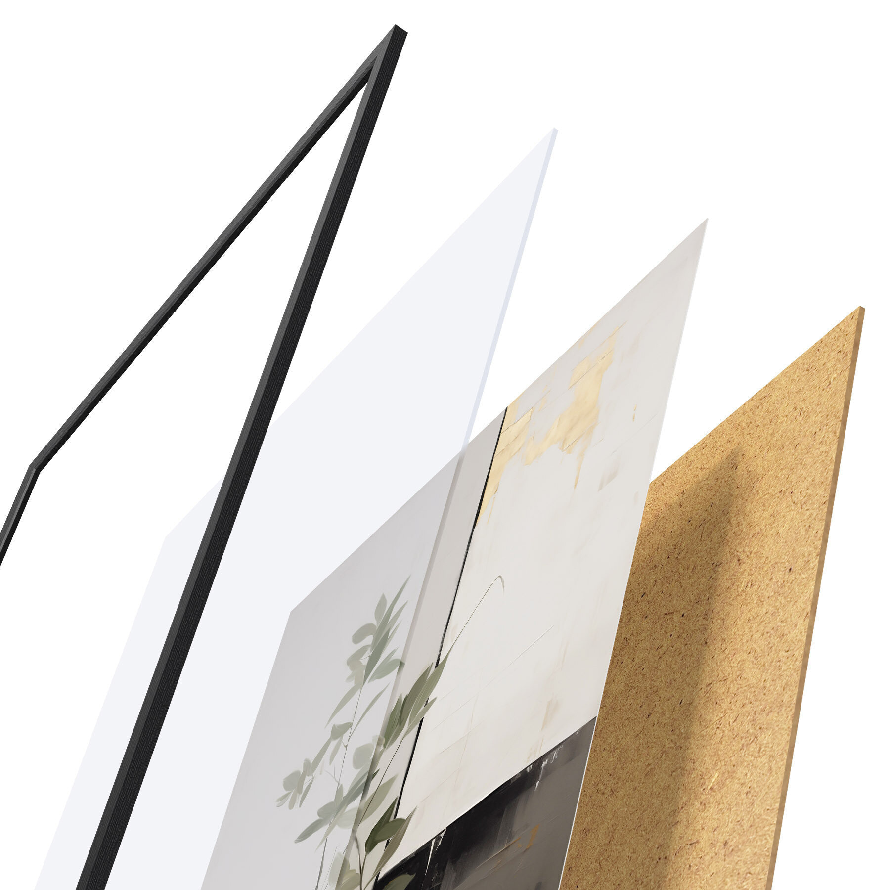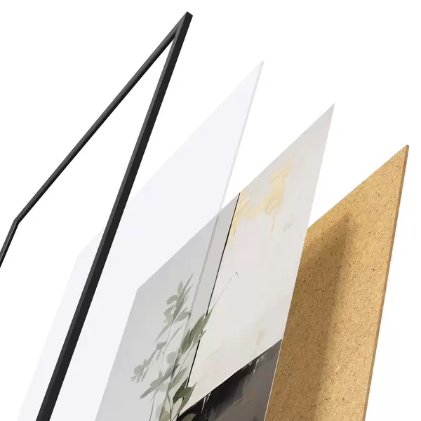 Plakatą sudaro rėmas, pleksiklas, atspausdintas vaizdas ir medžio drožlių plokštės pagrindas. Plakatą galima iš karto pakabinti ant sienos dėl kitoje pusėje esančių laikiklių.