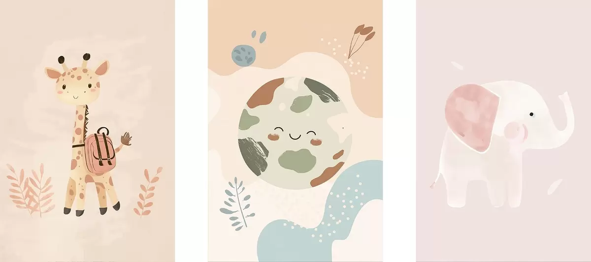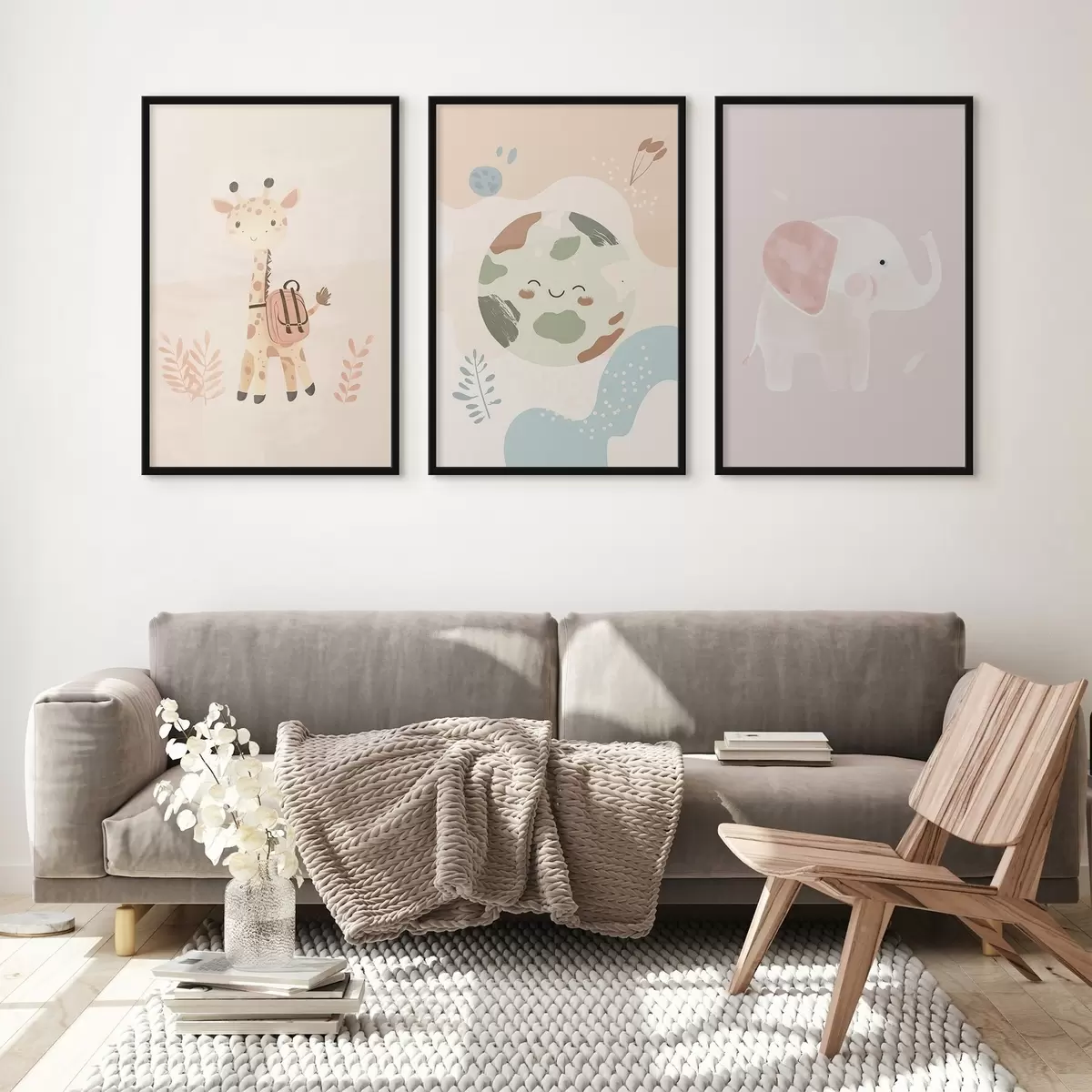 Plakatas Žemė, žirafa ir dramblys Ne d01135