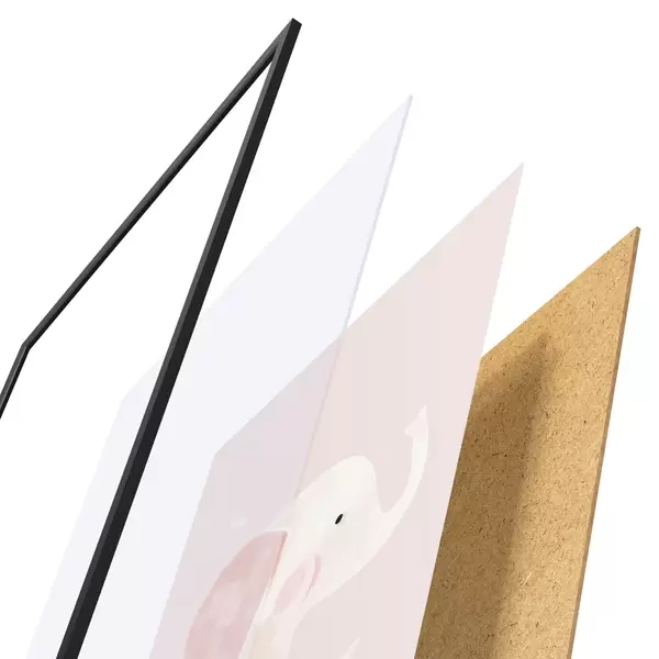 Plakatą sudaro rėmas, pleksiklas, atspausdintas vaizdas ir medžio drožlių plokštės pagrindas. Plakatą galima iš karto pakabinti ant sienos dėl kitoje pusėje esančių laikiklių.
