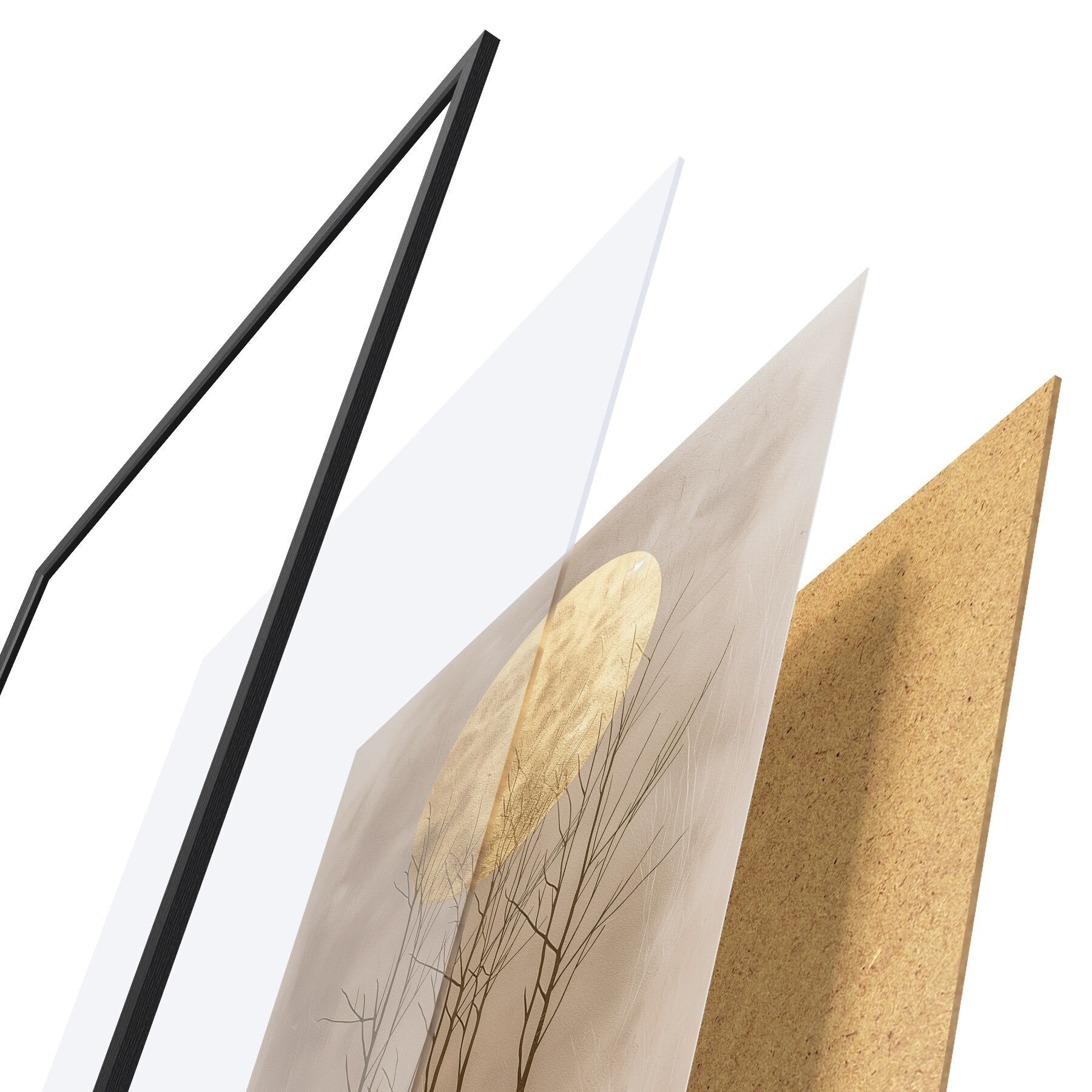 Plakatą sudaro rėmas, pleksiklas, atspausdintas vaizdas ir medžio drožlių plokštės pagrindas. Plakatą galima iš karto pakabinti ant sienos dėl kitoje pusėje esančių laikiklių.