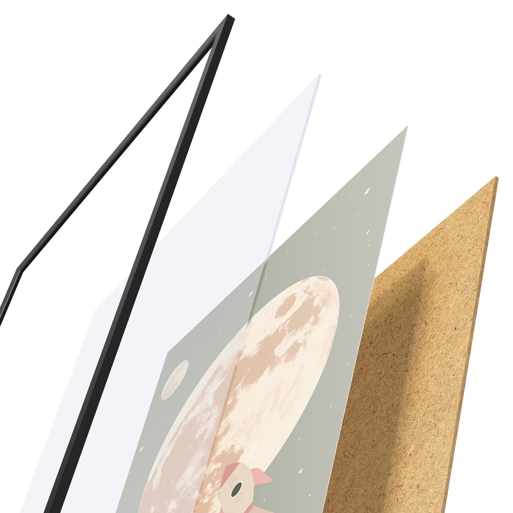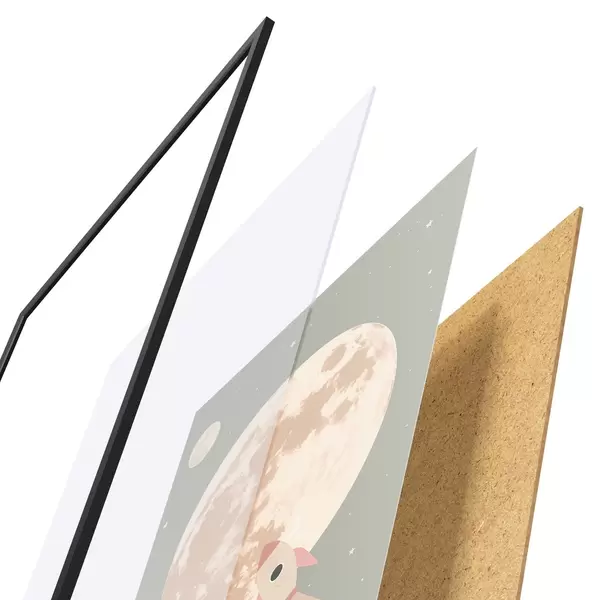 Plakatą sudaro rėmas, pleksiklas, atspausdintas vaizdas ir medžio drožlių plokštės pagrindas. Plakatą galima iš karto pakabinti ant sienos dėl kitoje pusėje esančių laikiklių.