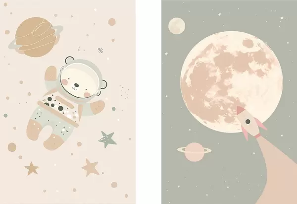 Plakatas Kosmonautas Lokys ir Mėnulis d01138
